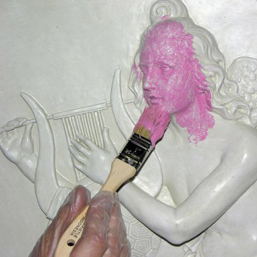 • Наносим кистью на вертикальную поверхность. Форма получается тонкой и тут обязательно необходим кожух, который изготавливается множеством способов, например, с помощью тиксотропных пластиков, гипсовых бинтов или эпоксидной смолы. Форма- мягкая, кожух –твердый для поддержания формы.