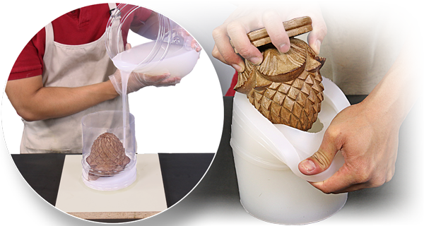 • Заливка. Вы заливаете Ваше хорошо прикрепленное изделие в опалубке. Форма имеет стенки и силикона расходуется больше, чем в способе «в намазку».