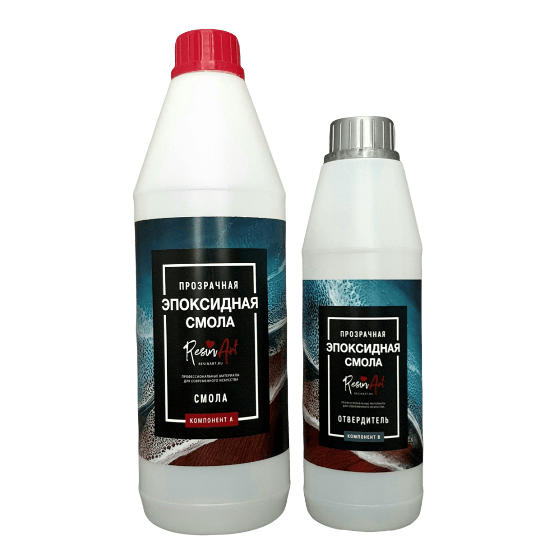 Прозрачная Густая двухкомпонентная эпоксидная смола. В комплект входит компонент А (смола) и компонент В (отвердитель) в соотношении 2:1. Данная смола имеет более вязкую консистенцию и идеально подходит для более точной работы с рисунком, например рисование срезов камней и моря. Смола лучше поддается контролю.