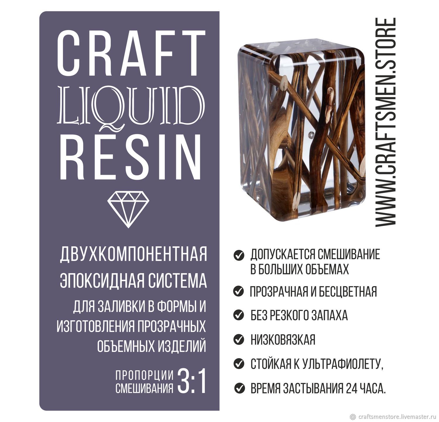 Литьевая эпоксидная смола CraftLiquidResin ,низковязкая (жидкая) смола кристальной прозрачности. Не мутнеет при заливке!