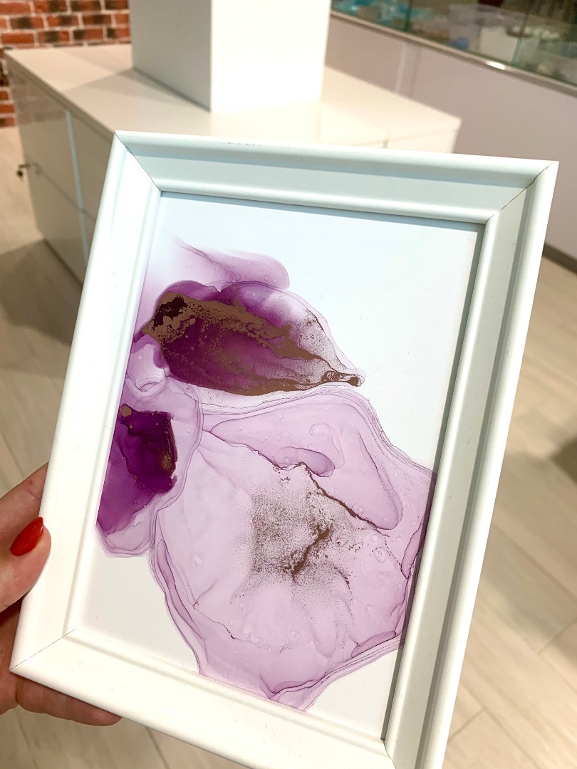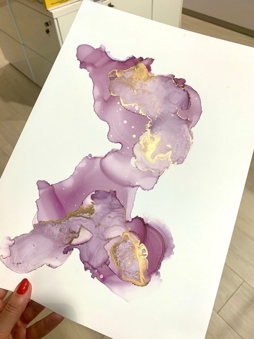 - Мы знакомим Вас именно с материалом "алкогольные чернила", обучение проходит на белом листе формата 25*35 см с использованием максимум 3х цветов. На большей площади сложнее сконцентироваться, а нам важно донести до Вас всю информацию на практике.